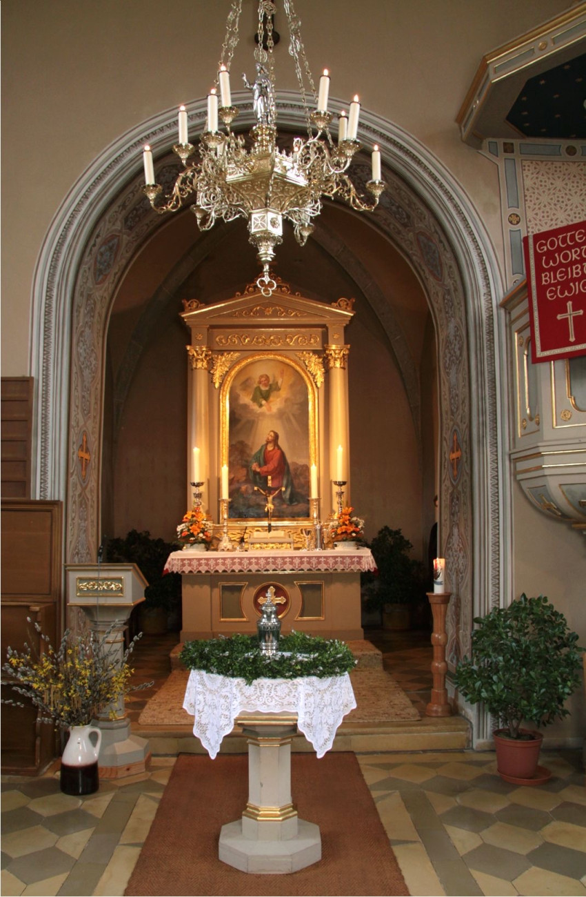 Die evangelische Kirche St. Lorenz befindet sich in einem ummauerten Friedhof in der Ortsmitte von Schaffhausen, einem Ortsteil der Gemeinde Mönchsdeggingen.